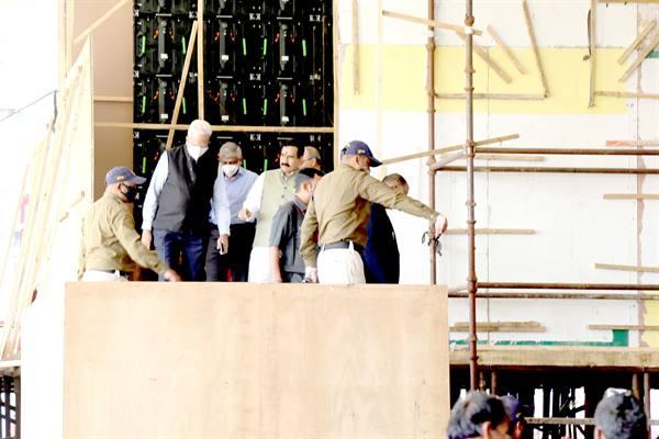 भोपाल : गृह मंश्री डॉ.नरोत्तम मिश्रा ने शुक्रवार को जंबूरी मैदान में तैयारियों का अवलोकन किया। उन्होंने कहा कि आगामी 15 नवम्बर को जनजातीय गौरव दिवस पर आयोजित महासम्मेलन और प्रधानमंत्री जी के भ्रमण को दृष्टिगत रखते हुए चाक चौबंद सुरक्षा प्रबंध किये जा रहे है। मंत्री डॉ. मिश्रा ने पुलिस महानिदेशक श्री विवेक जौहरी के साथ मैदान में कार्यक्रम की तैयारी संबंधी प्रबंधों की जानकारी ली। उन्होंने प्रबंधकों को निर्देशित किया कि सभी इंतजाम बेहतर तरीके से सुनिश्चित हों।
