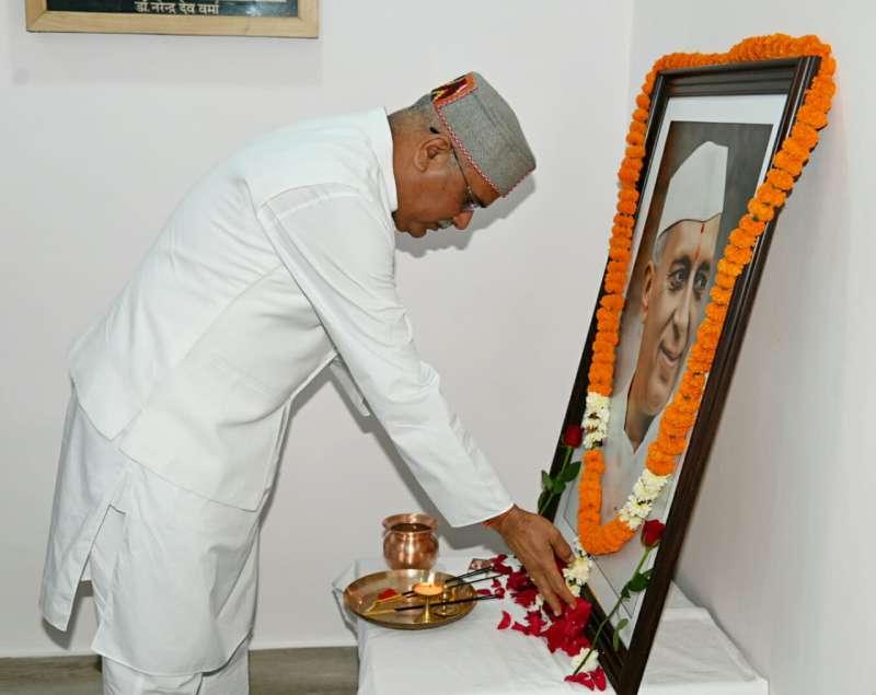 रायपुर : मुख्यमंत्री श्री भूपेश बघेल ने आज यहां अपने निवास कार्यालय में देश के प्रथम प्रधानमंत्री भारत रत्न पण्डित जवाहरलाल नेहरू की जयंती के अवसर पर उनके चित्र पर पुष्प अर्पित कर उन्हें नमन किया । इस अवसर पर छत्तीसगढ़ राज्य खनिज विकास निगम के अध्यक्ष श्री गिरीश देवांगन भी उपस्थित थे ।