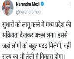 सुधारों को लागू करने में म.प्र. की सक्रियता अच्छी लगी -प्रधानमंत्री श्री नरेन्द्र मोदी का ट्वीट