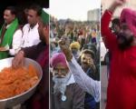 तीनों कृषि कानूनों को निरस्त की घोषणा के साथ किसानों ने प्रदर्शन स्थल पर बांटी मिठाई और जलेबी