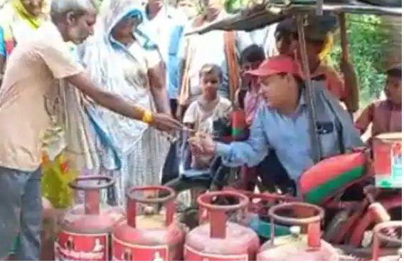 इतना ही नहीं सिलेंडर के स्टीकर पर मुलायम सिंह यादव, पूर्व मुख्यमंत्री अखिलेश यादव व उनकी पत्नी डिंपल यादव की फोटो भी लगाई गई है. आप तस्वीर में देख सकते हैं कि किस तरह से दिव्यांग सपा नेता पंडित समरजीत ग्रामीणों में गैस सिलेंडर वितरित कर रहे हैं. वितरण के साथ ही समाजवादी पार्टी की प्रमुख घोषणाओं का जिक्र भी कर रहे हैं. अयोध्या के दिव्यांग सपा नेता पंडित समरजीत ने ग्रामीण क्षेत्र के मवई बाबूपुर में पहुंचकर दो दर्जन से अधिक महिलाओं को 499 रुपये में गैस सिलेंडर वितरित किए, जबकि इसका मूल्य 945 रुपये है.