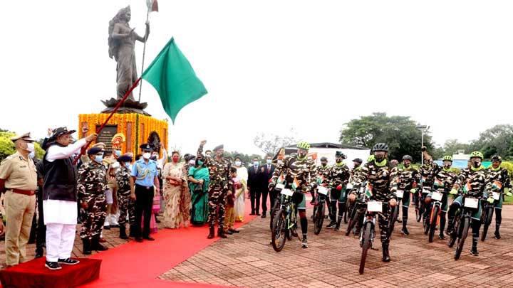राज्यपाल श्री पटेल ने हरी झंडी दिखाकर साइकिल रैली को रवाना किया। शौर्य स्मारक आगमन पर राज्यपाल को सशस्त्र सीमा बल की सम्मान गारदद्वारा सलामी दी गई। सशस्त्र सीमा बल की ओर से स्मृति चिन्ह भेंट किया गया। इंडो-तिब्बत-बॉर्डर पुलिस के महानिरीक्षक श्री संजीव रैना, सशस्त्र सीमा बल के अधिकारी उनके परिजन भी मौजूद थे।