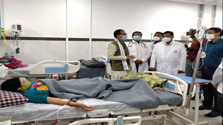मुख्यमंत्री श्री चौहान ने अटल बिहारी वाजपेयी मेडिकल कॉलेज के विभिन्न वार्डों का निरीक्षण कर भर्ती मरीजों से संवाद भी किया। उन्होंने कॉलेज में कोविड इलाज के लिए किए गए प्रबंधों की भी जानकारी ली।
