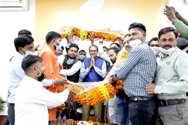 भोपाल : आज गोंड समाज के प्रतिनिधियों ने मुख्यमंत्री निवास आकर मुख्यमंत्री श्री शिवराज सिंह चौहान का अभिनंदन किया। गोंड समाज द्वारा रानी कमलापति की स्मृति को स्थाई बनाने के प्रयासों के लिए विशाल पुष्पहार पहनाकर मुख्यमंत्री श्री चौहान का स्वागत और अभिनंदन किया। मुख्यमंत्री निवास में रानी कमलापति अमर रहे और रानी तेरा यह बलिदान याद रखेगा हिन्दुस्तान, बिरसा भगवान की जय के नारे भी समवेत स्वर में गूंजे।