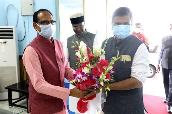 भोपाल : मुख्यमंत्री श्री शिवराज सिंह चौहान ने केंद्रीय ऊर्जा, नवीन एवं नवकरणीय ऊर्जा मंत्री श्री आर.के. सिंह का स्टेट हैंगर पर पुष्प-गुच्छ भेंट कर स्वागत किया। उल्लेखनीय है कि केंद्रीय मंत्री श्री सिंह शाजापुर में 1500 मेगावाट आगर, नीमच, शाजापुर सोलर पार्क के अनुबंध पर हस्ताक्षर एवं शिलान्यास समारोह में भाग लेने मध्यप्रदेश आये हैं। प्रदेश के चिकित्सा शिक्षा मंत्री श्री विश्वास सारंग भी उपस्थित थे।