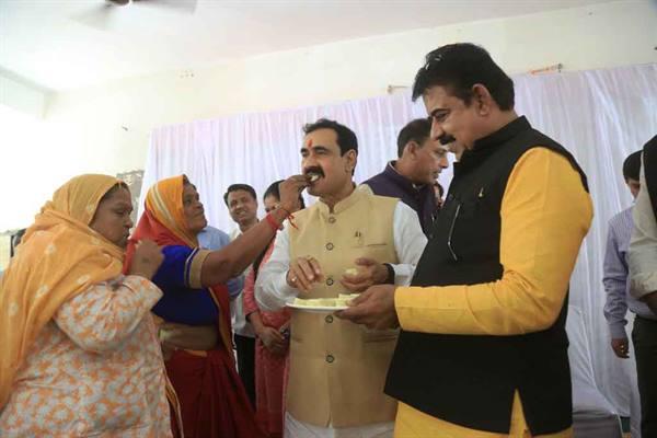 भोपाल : गृह एवं इंदौर जिले के प्रभारी मंत्री डॉ. नरोत्तम मिश्रा ने आज इंदौर नगर के राज मोहल्ला में जाकर सफाई कर्मियों की हौसला अफजाई की और लगातार पांचवी बार स्वच्छता में नंबर वन बनने पर बधाई दी। डॉ. मिश्रा शहर के सफाई कर्मियों से मिलने राजमोहल्ला पहुँचे। उन्होंने स्वच्छता योद्धाओं का पुष्प वर्षा कर सम्मान भी किया। मंत्री डॉ. मिश्रा ने इंदौर को लगातार नंबर वन बनाने में स्वच्छता योद्धाओं के योगदान की सराहना की और मिठाई खिलाकर उनके द्वारा की गई कड़ी मेहनत के लिये आभार भी माना। सांसद श्री शंकर लालवानी सहित अन्य जन-प्रतिनिधि एवं अधिकारी उपस्थित रहे।